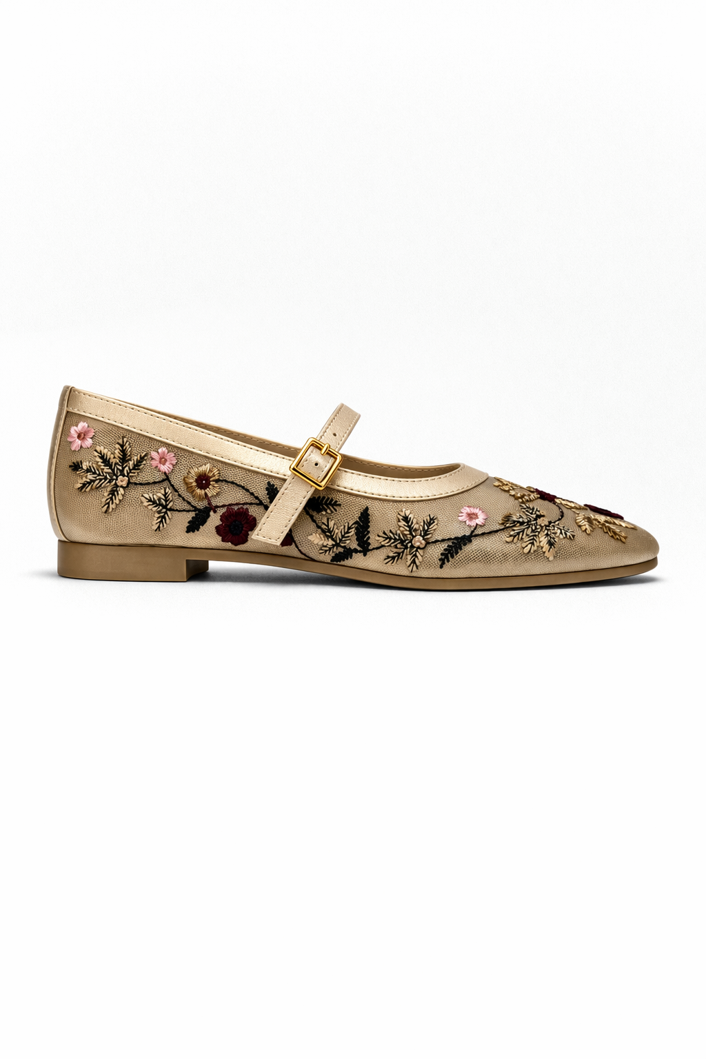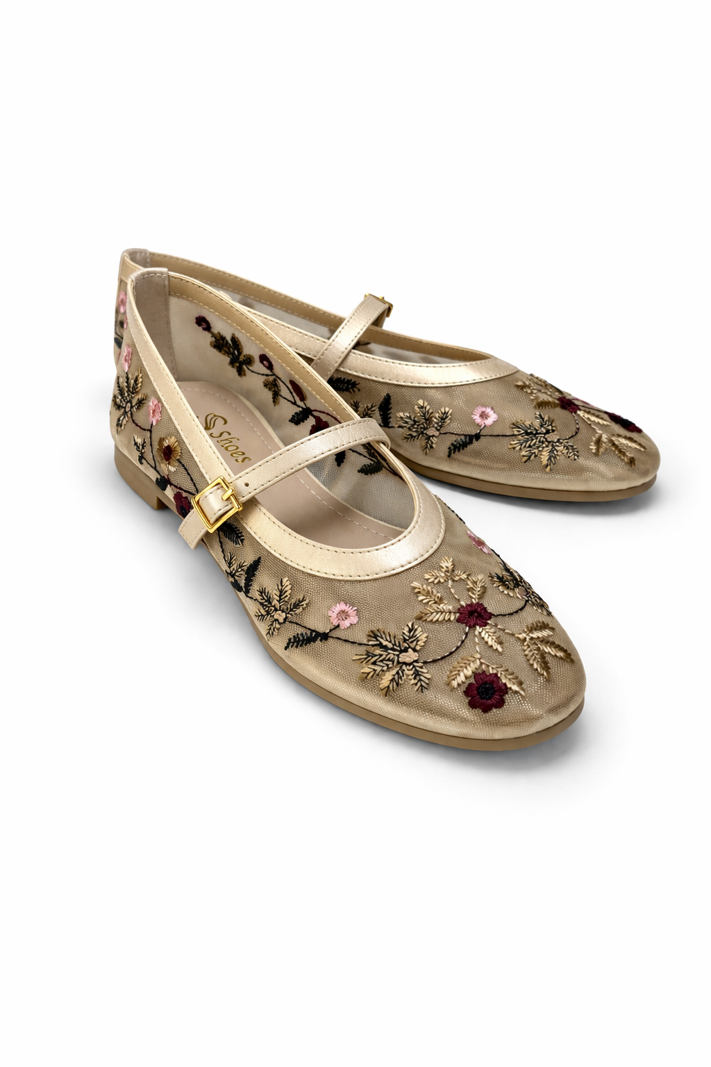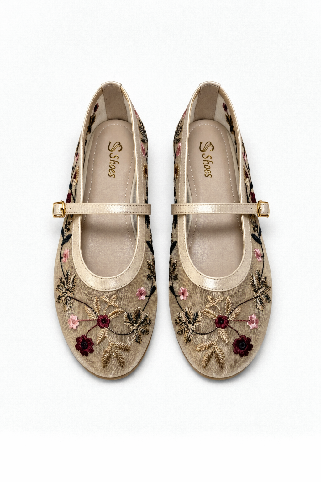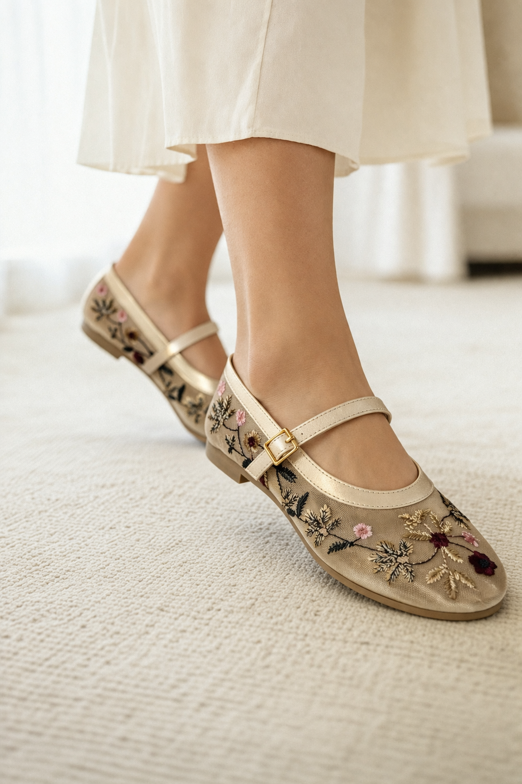 Kadın Bej Çiçek Nakışlı Mary Jane Babet Günlük Rahat Babet Ayakkabı