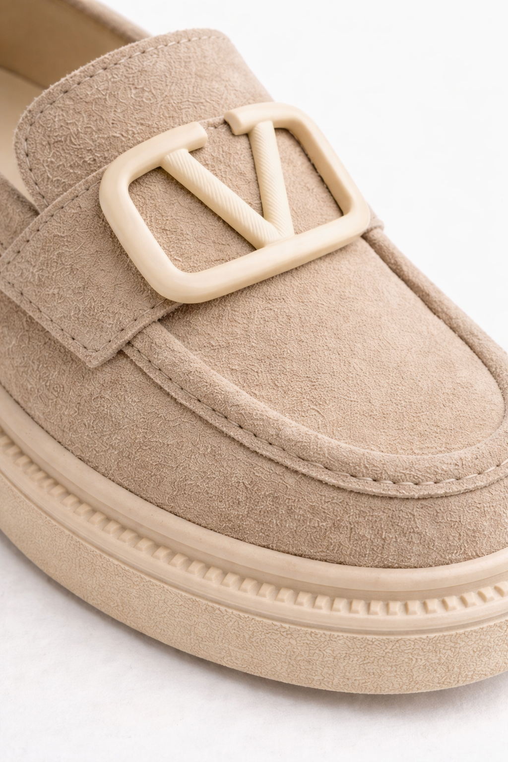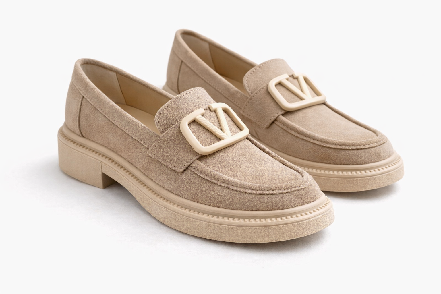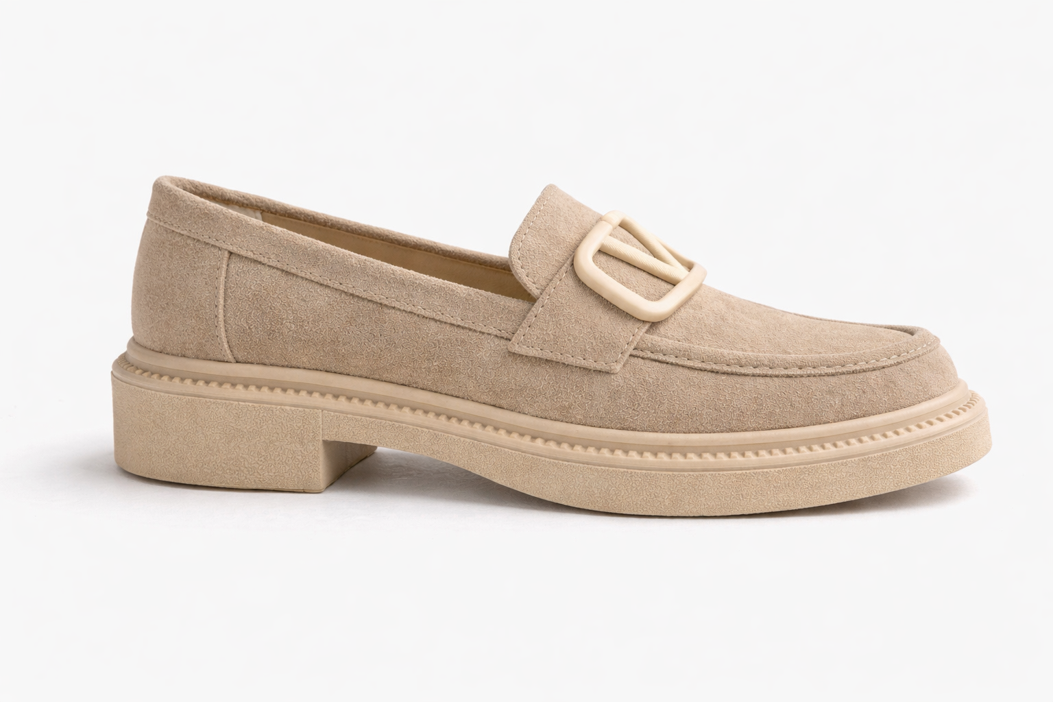 Kadın Bej Süet Tokalı Loafer Günlük Rahat Taban Makosen Ayakkabı