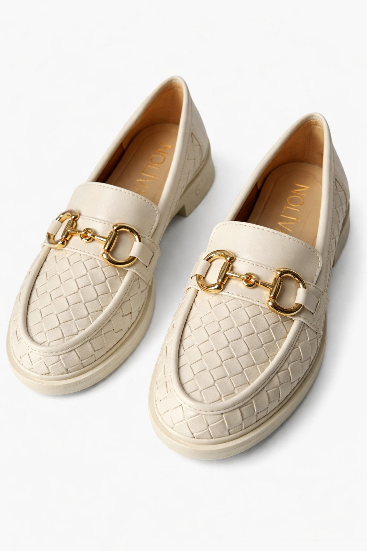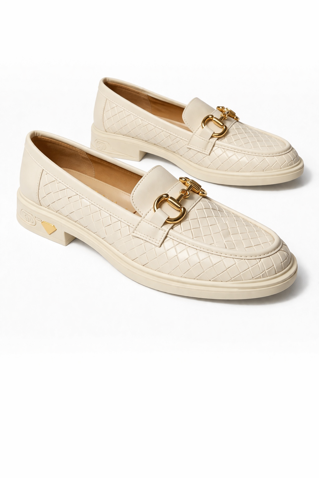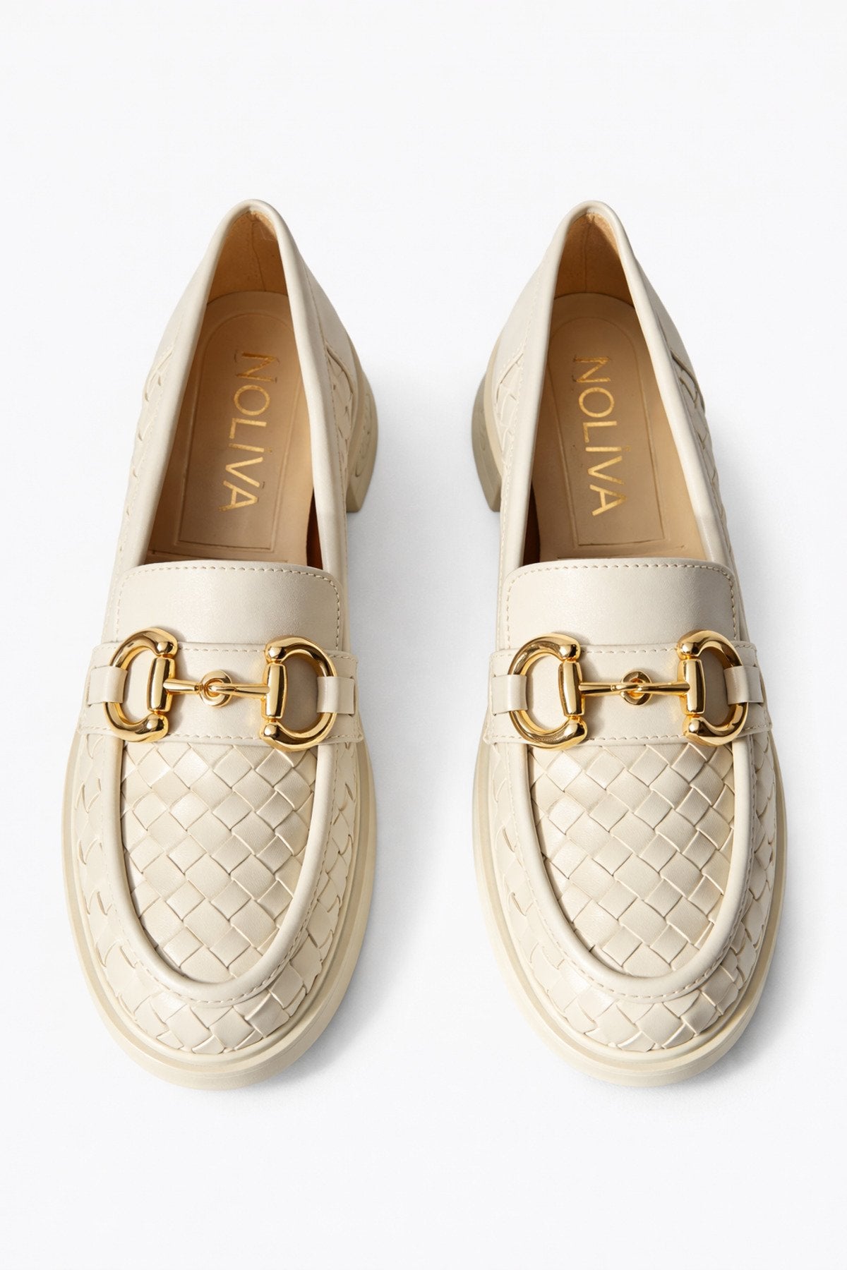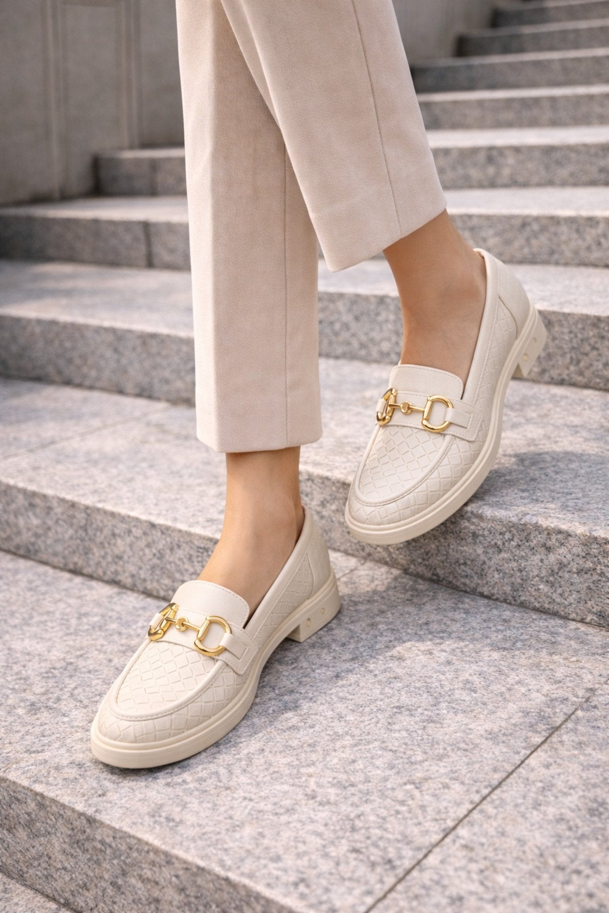 Kadın Örgü Desenli Gold Zincir Tokalı Kalın Tabanlı Loafer Ayakkabı
