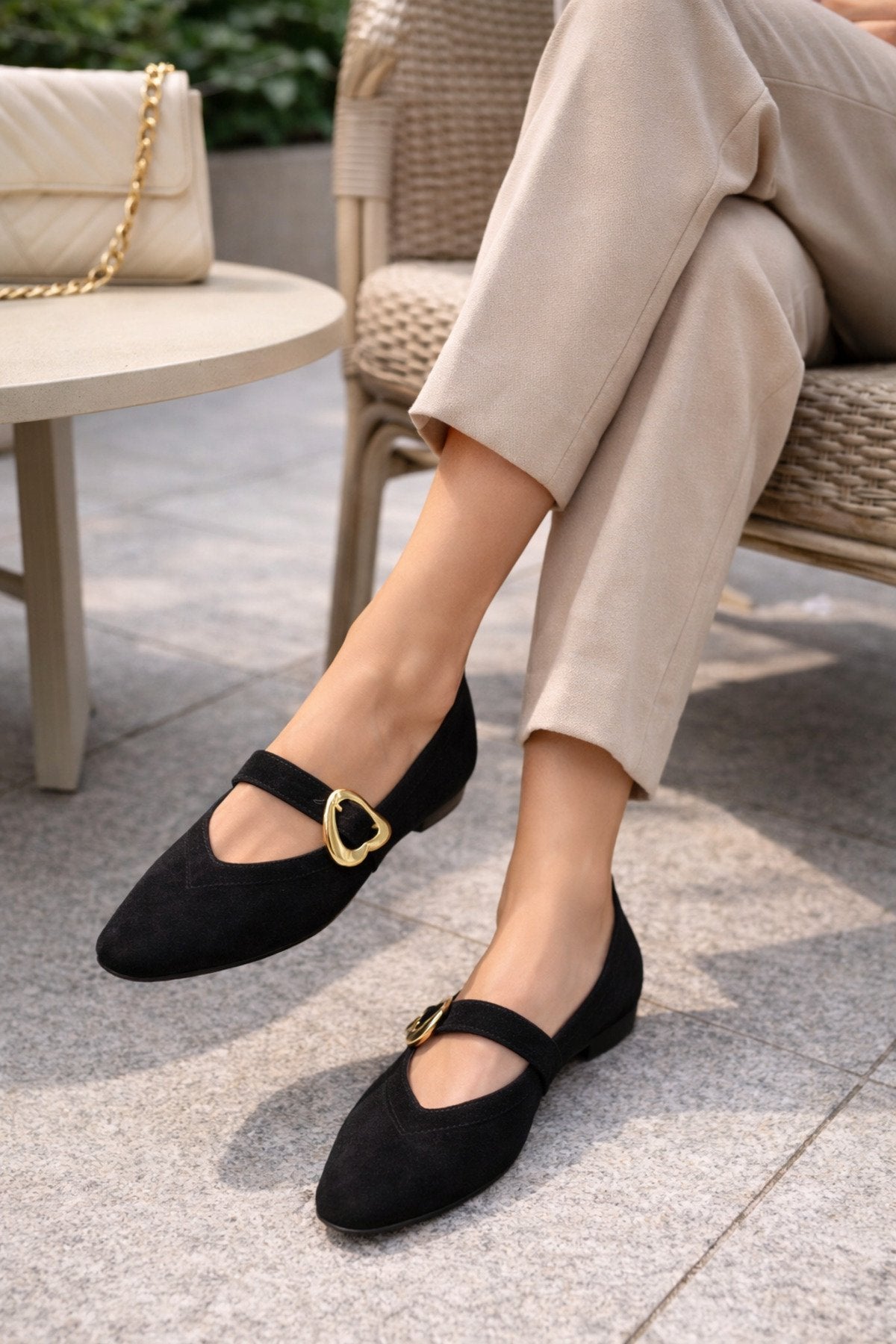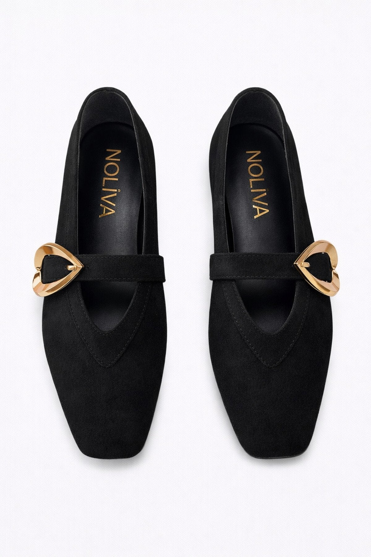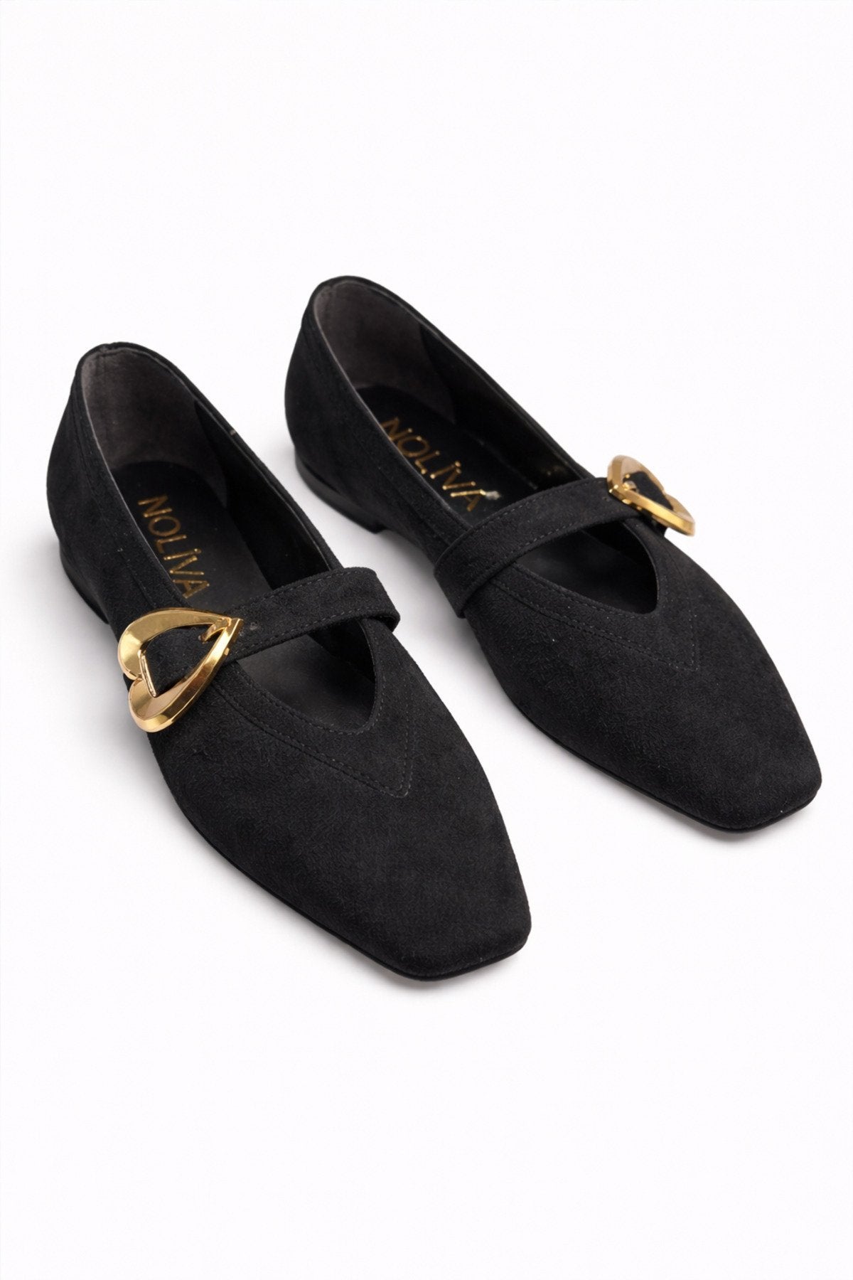 Kadın Siyah Süet Kalp Tokalı Babet Günlük Şık Mary Jane Babet